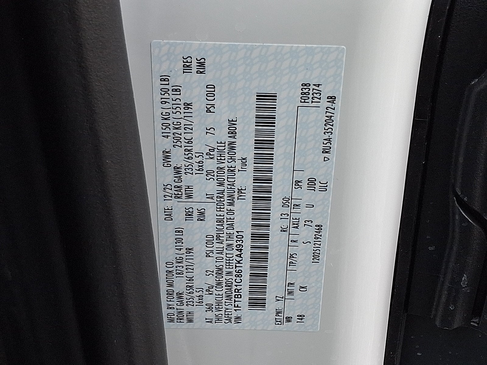 VIN: 1FTBR1C86TKA49301
